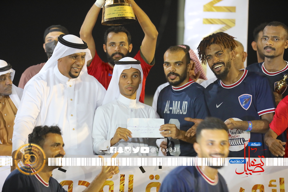 بحضور رئيس نادي التسامح أ / عبدالرحمن سلطان العبدلي والأمين العام لرابطة فرق الأحياء بالقنفذة أ / بحني إبراهيم الزبيدي ورئيس بلدية المظيلف أ / بلقاسم خضر المقعدي والشيخ / محمد بن عبدالله المقعدي والشيخ / محمد بن مرعي القحماني والشيخ / ياسين العذيقي ورئيس تطوير فرق القوز أ / حسين الزحيمي ورئيس تطوير فرق الشمال أ / أحمد الزبيدي ورجال الأعمال والداعمين للبطولة أقيمت المباراة النهائية لبطولة القحمان 20 والتي جمعت بين فريق المجد وفريق الحبيل وانتهت المباراة بفوز فريق المجد بركلات الترجيح ٤-١ بعد التعادل السلبي بدون أهداف في الأشواط الأصلية، قاد المباراة الحكم / علي الفضلي ويساعده كل من عبدالله موسى وبلقاسم الفقيه وحكم رابع ماجد العمري ومراقب المباراة شامي سليمان القوزي، وتحصل حارس فريق المجد (صالح مشاري) على جائزة أفضل حارس في البطولة كما تحصل لاعب فريق الحبيل (بلقاسم الزيلعي) على جائزة أفضل لاعب في البطولة، سبق المباراة الحفل الختامي للبطولة والذي احتوى على كلمة للشيخ / محمد القحماني شكر فيها أعضاء اللجنة المنظمة والداعمين للبطولة ثم تكريم أعضاء اللجنة المنظمة وكذلك الرعاة والداعمين للبطولة والجهات الإعلامية ثم بعد ذلك استمتع الجمهور بالرقصات الشعبية والألعاب النارية.