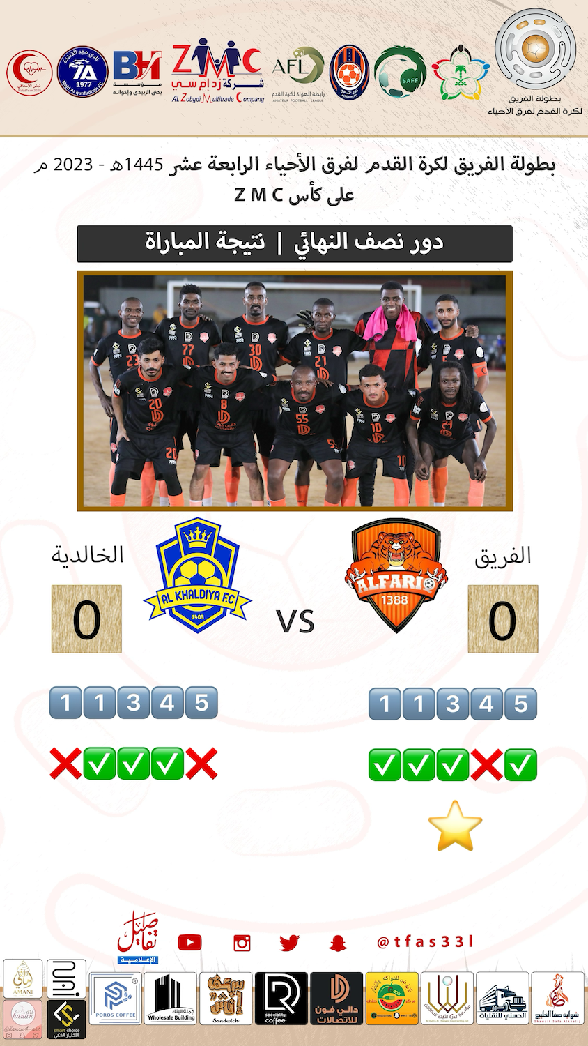 وفي المباراة الثانية تمكن فريق الفريق من الفوز على فريق الخالدية بركلات الترجيح ( 3 – 4 ) بعد التعادل السلبي بدون أهداف في الأشواط الأصلية، بهذا الفوز يصل الفريق للمباراة النهائية للمرة الأولى في البطولة.