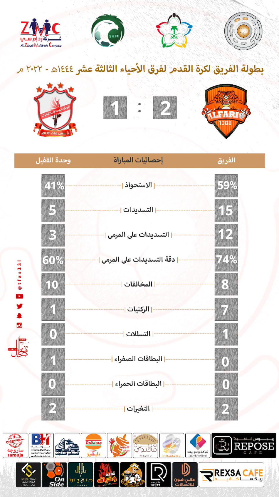 | المباراة الأولى ( الفريق - وحدة القفيل ) |