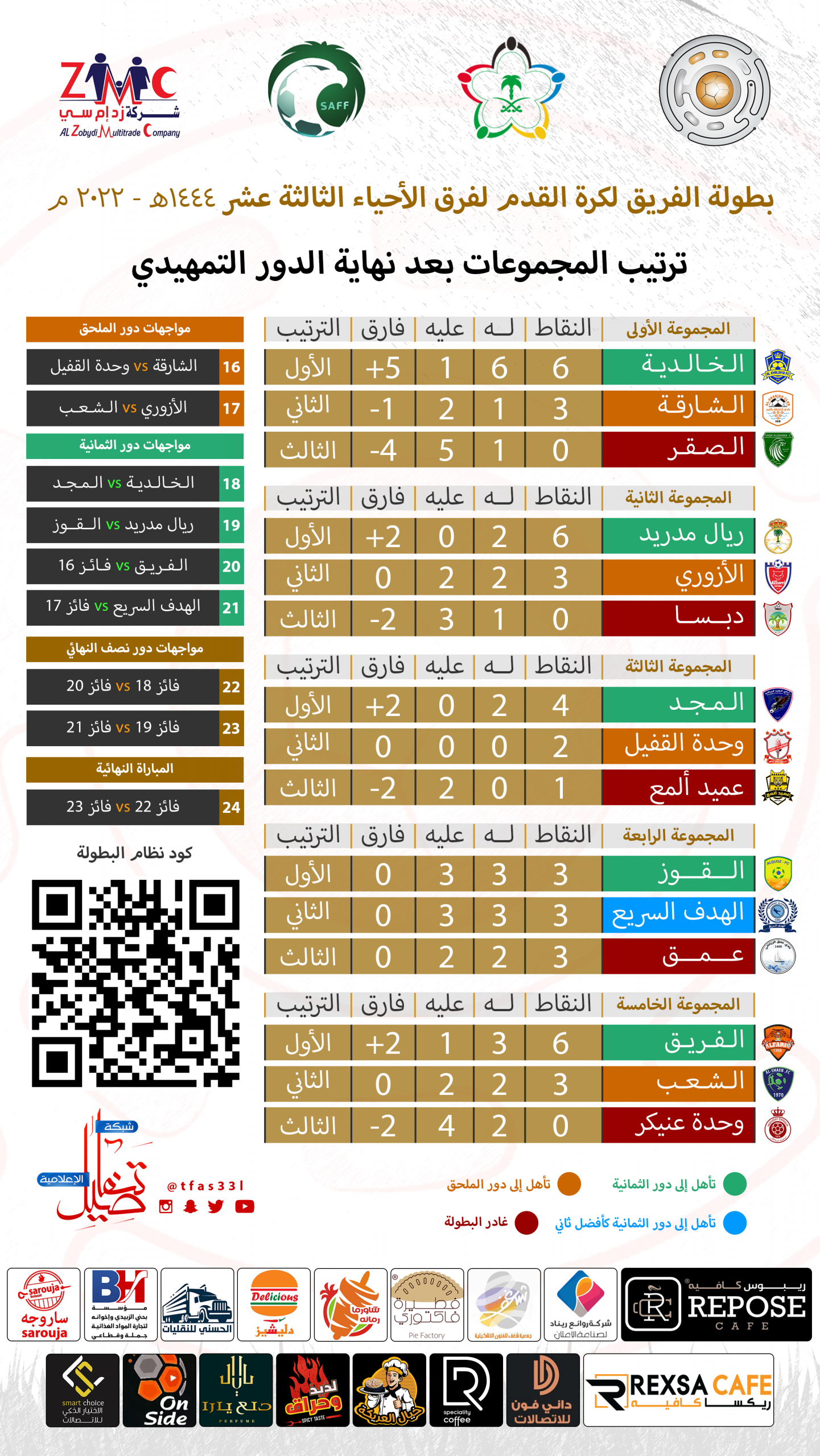 | ترتيب المجموعات بعد نهاية الدور التمهيدي |