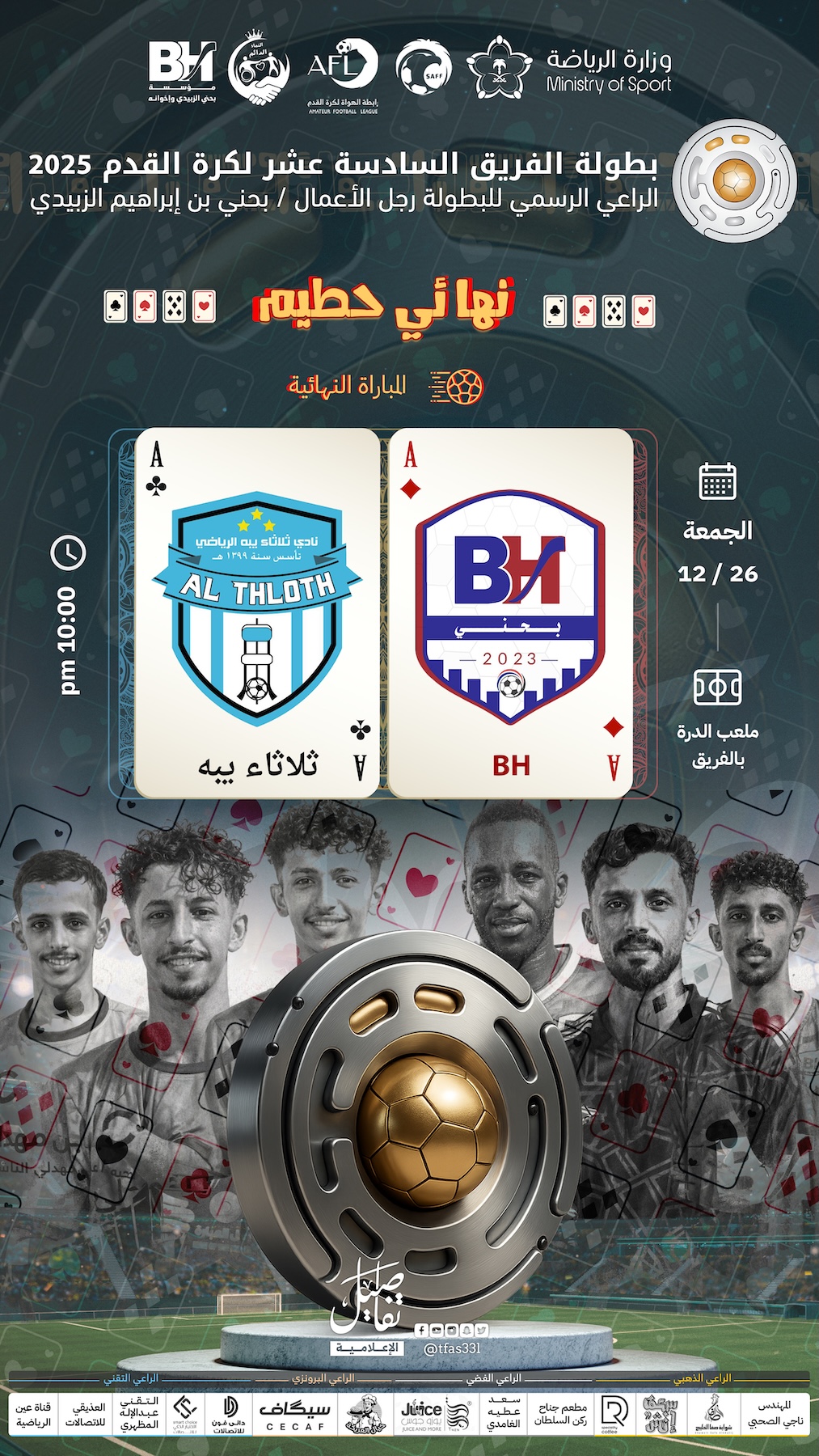 بهذه النتائج، يضرب BH وثلاثاء يبه موعدًا ناريًا في نهائي بطولة الفريق 16 يوم الجمعة 26 ديسمبر، في مواجهة ينتظرها الشارع الرياضي بشغف كبير.