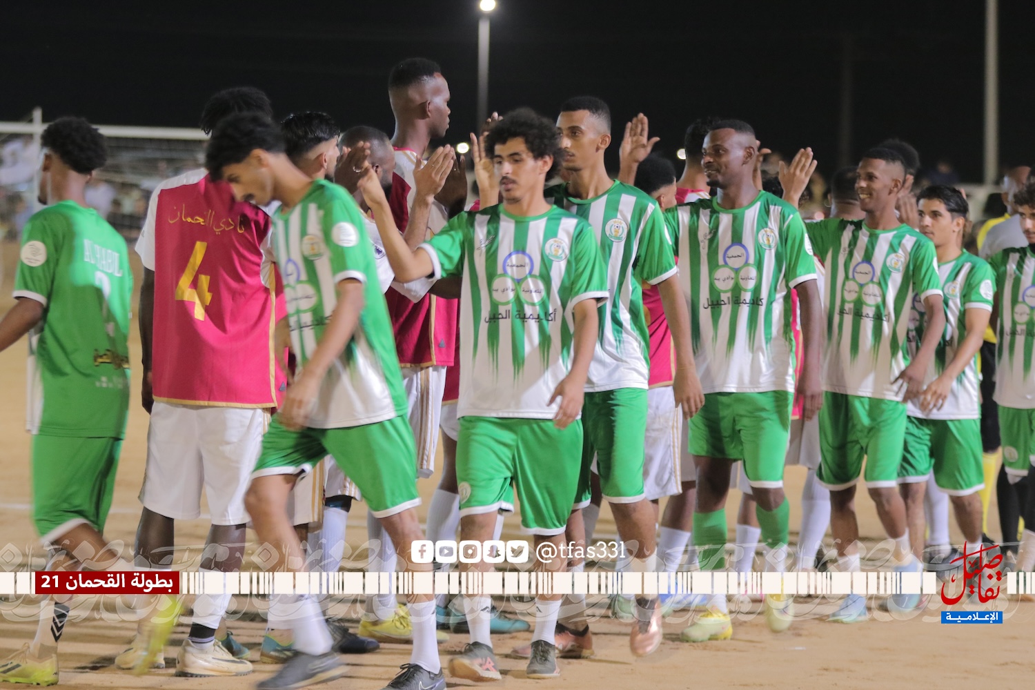 وفي المباراة الثانية تمكن فريق القحمان من الفوز على فريق الحبيل بركلات الترجيح ٣ – ١ بعد التعادل السلبي بدون أهداف وصل معها القحمان إلى دور نصف النهائي لمواجهة فريق وحدة عنيكر.