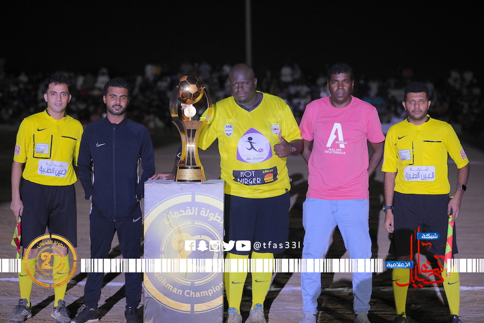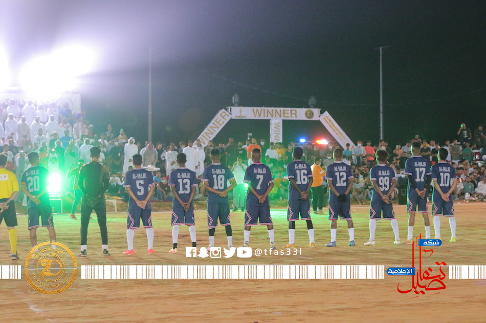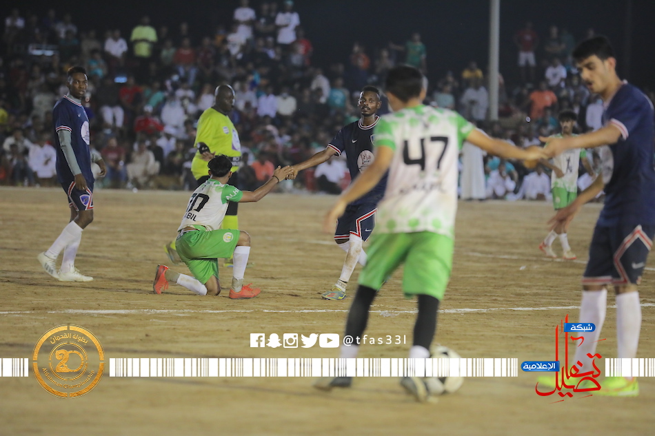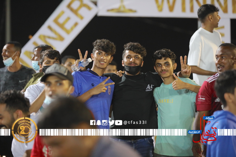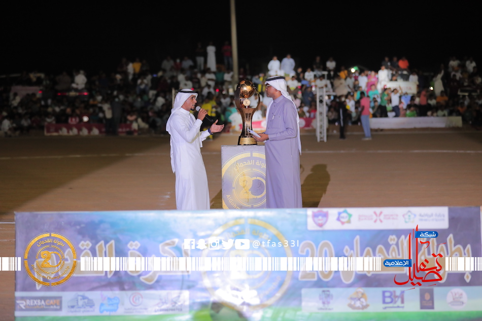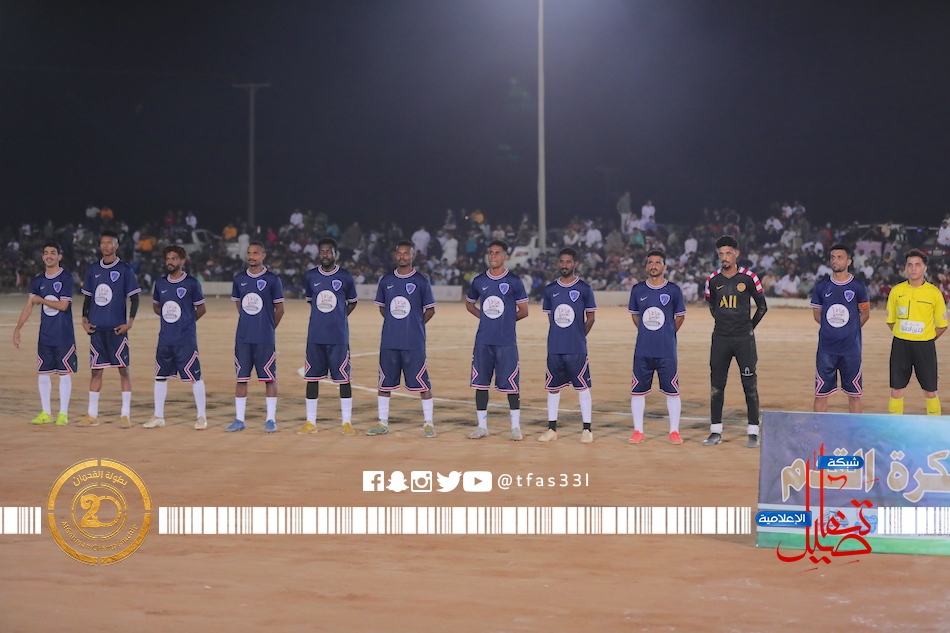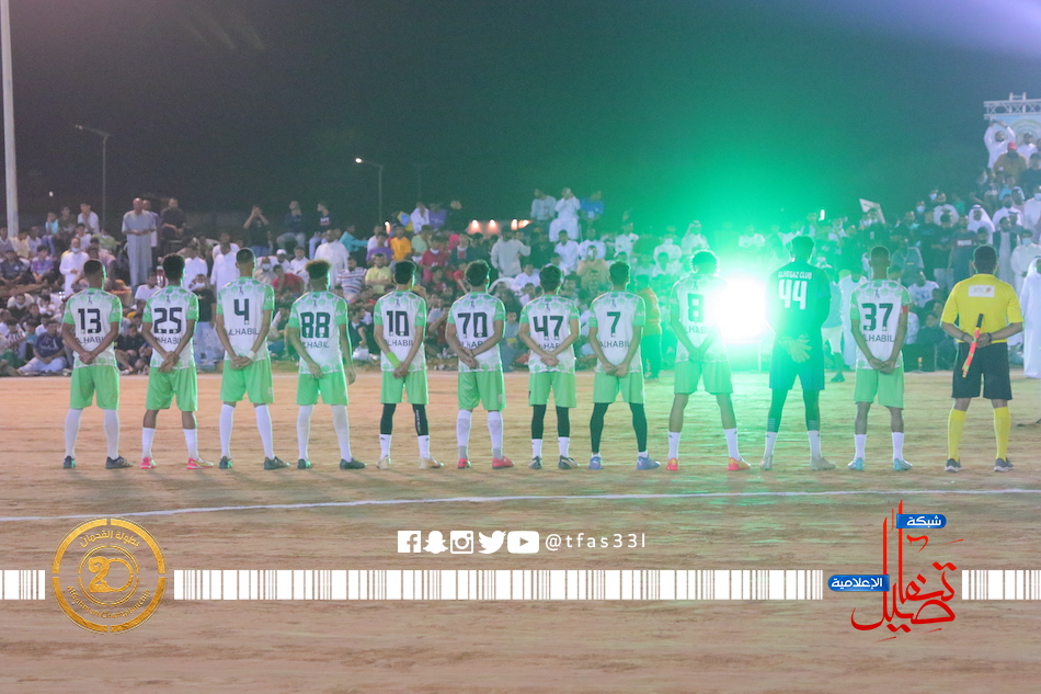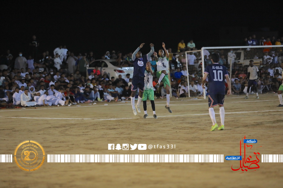 بحضور رئيس نادي التسامح أ / عبدالرحمن سلطان العبدلي والأمين العام لرابطة فرق الأحياء بالقنفذة أ / بحني إبراهيم الزبيدي ورئيس بلدية المظيلف أ / بلقاسم خضر المقعدي والشيخ / محمد بن عبدالله المقعدي والشيخ / محمد بن مرعي القحماني والشيخ / ياسين العذيقي ورئيس تطوير فرق القوز أ / حسين الزحيمي ورئيس تطوير فرق الشمال أ / أحمد الزبيدي ورجال الأعمال والداعمين للبطولة أقيمت المباراة النهائية لبطولة القحمان 20 والتي جمعت بين فريق المجد وفريق الحبيل وانتهت المباراة بفوز فريق المجد بركلات الترجيح ٤-١ بعد التعادل السلبي بدون أهداف في الأشواط الأصلية، قاد المباراة الحكم / علي الفضلي ويساعده كل من عبدالله موسى وبلقاسم الفقيه وحكم رابع ماجد العمري ومراقب المباراة شامي سليمان القوزي، وتحصل حارس فريق المجد (صالح مشاري) على جائزة أفضل حارس في البطولة كما تحصل لاعب فريق الحبيل (بلقاسم الزيلعي) على جائزة أفضل لاعب في البطولة، سبق المباراة الحفل الختامي للبطولة والذي احتوى على كلمة للشيخ / محمد القحماني شكر فيها أعضاء اللجنة المنظمة والداعمين للبطولة ثم تكريم أعضاء اللجنة المنظمة وكذلك الرعاة والداعمين للبطولة والجهات الإعلامية ثم بعد ذلك استمتع الجمهور بالرقصات الشعبية والألعاب النارية.