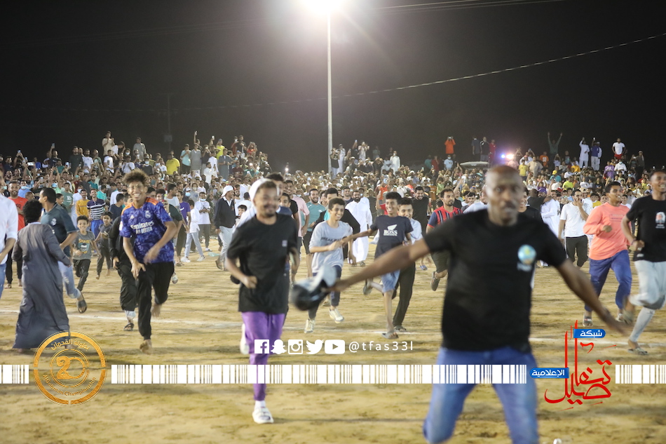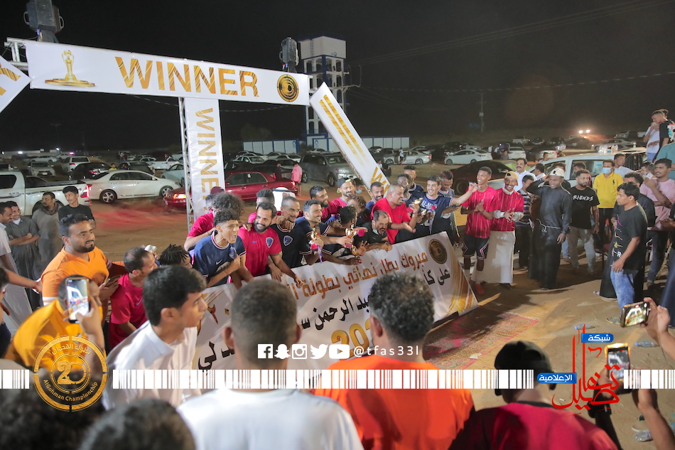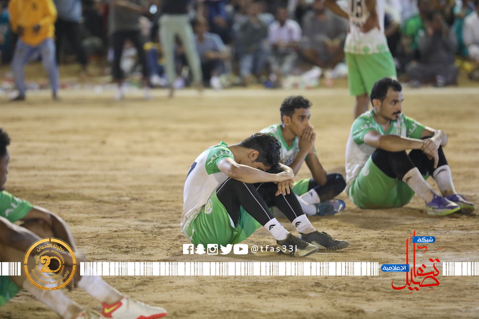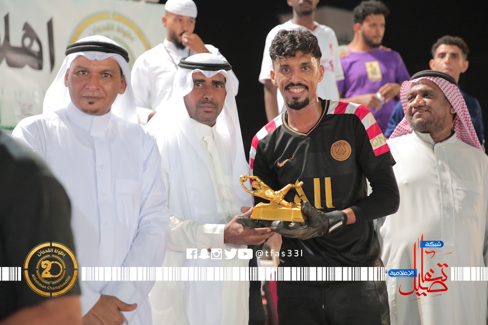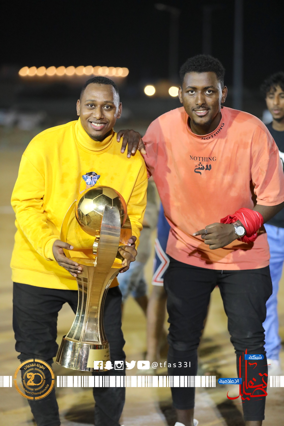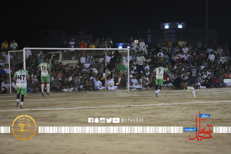 بحضور رئيس نادي التسامح أ / عبدالرحمن سلطان العبدلي والأمين العام لرابطة فرق الأحياء بالقنفذة أ / بحني إبراهيم الزبيدي ورئيس بلدية المظيلف أ / بلقاسم خضر المقعدي والشيخ / محمد بن عبدالله المقعدي والشيخ / محمد بن مرعي القحماني والشيخ / ياسين العذيقي ورئيس تطوير فرق القوز أ / حسين الزحيمي ورئيس تطوير فرق الشمال أ / أحمد الزبيدي ورجال الأعمال والداعمين للبطولة أقيمت المباراة النهائية لبطولة القحمان 20 والتي جمعت بين فريق المجد وفريق الحبيل وانتهت المباراة بفوز فريق المجد بركلات الترجيح ٤-١ بعد التعادل السلبي بدون أهداف في الأشواط الأصلية، قاد المباراة الحكم / علي الفضلي ويساعده كل من عبدالله موسى وبلقاسم الفقيه وحكم رابع ماجد العمري ومراقب المباراة شامي سليمان القوزي، وتحصل حارس فريق المجد (صالح مشاري) على جائزة أفضل حارس في البطولة كما تحصل لاعب فريق الحبيل (بلقاسم الزيلعي) على جائزة أفضل لاعب في البطولة، سبق المباراة الحفل الختامي للبطولة والذي احتوى على كلمة للشيخ / محمد القحماني شكر فيها أعضاء اللجنة المنظمة والداعمين للبطولة ثم تكريم أعضاء اللجنة المنظمة وكذلك الرعاة والداعمين للبطولة والجهات الإعلامية ثم بعد ذلك استمتع الجمهور بالرقصات الشعبية والألعاب النارية.
