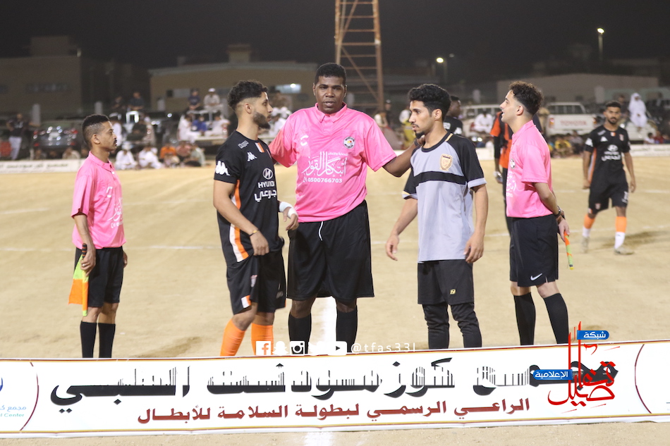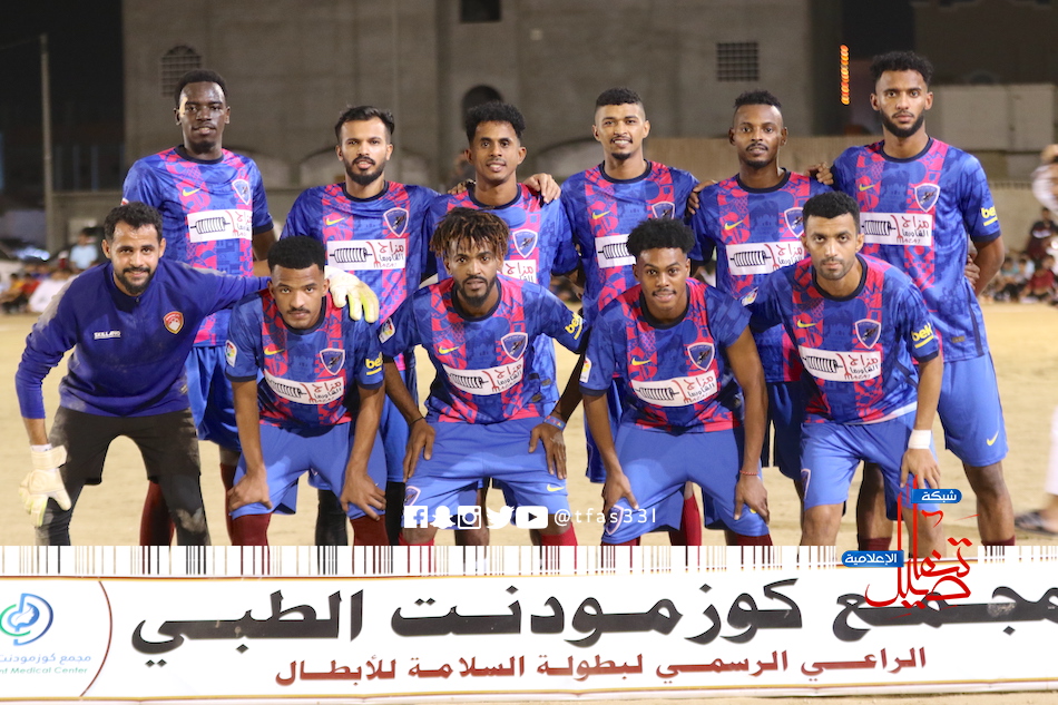 انتهت المباراة التي جمعت فريق الوفاق وفريق الفريق ضمن مباريات دور نصف النهائي لبطولة السلامة للأبطال بفوز الفريق بركلات الترجيح ٢- ٤ بعد التعادل السلبي بدون أهداف .. بداية جس نبض من الطرفين .. الوفاق أفضل بعد مرور الوقت .. الدقيقة العاشرة تشهد التهديد الأول للوفاق بعد عرضية أرضية لم تجد المهاجمين مرت برداً وسلاماً على مرمى الفريق .. الفريق يعيد ترتيب الصفوف ويبدأ في تشكيل الخطورة من الطرف الأيسر في ظل وجود الخطير الشلهوب والإسناد من الشيخي إبراهيم .. الدقيقة ٢٢ مهاجم الفريق محمد النيلي يتوغل من الطرف الأيسر ويتمكن ممن تجاوز حارس المرمى ولكن ارسل الكرة في الشباك الجانبية وسط حسرة من جمهور الفريق .. مدرب الوفاق يتدخل ويجري تبديل في الطرف الأيسر لسد الثغرة بدخول محمد بوغبا وخروج عبده علي .. الدقيقة ٣٠ الوفاق كاد أن يسجل هدف التقدم بتسديدة قوية من الجابري لكن براعة حارس الفريق محمد آبيا الذي تمكن من إبعاد الكرة .. شوط أول متكافئ من الطرفين مع خطورة لفريق الفريق .. في الشوط الثاني الفريق يتحصل ضربة زاوية أرسلها الشلهوب على رأس علي راموس الذي وضعها بجانب القائم الأيمن لحارس الوفاق .. تستمر خطورة الفريق من الطرف الأيسر وهذه المرة يرسلها الشلهوب عرضية أرضية لم تجد أحد من لاعبين الفريق .. الوفاق يرد بتسديدة قوية من فهد المعلم أبعدها حارس الفريق بنجاح .. الوفاق يتحسن في الناحية الهجومية والفريق خطير من الأطراف .. الدقيقة ٥٠ نجم الفريق محمد أبكر يهدر فرصة التقدم بعد انفراد صريح بحارس المرمى الذي تمكن من التصدي لتسديدة أبكر .. الفريق خطير وعلي فوزي يزج بورقة حرقان بديلاً عن إبراهيم الشيخي .. يعود المزعج لدفاعات الوفاق محمد أبكر الذي تلاعب بالظهير الأيسر ويرسل تسديدة قوية مرت بجانب القائم الأيمن .. في الدقيقة ٦٢ نافع الهلالي يستغل خطأ مدافع الفرق خليل المصلحي وينفرد بالمرمى ويرسل تسديدة تكفلت العارضة بإبعاد الكرة .. تتجه المباراة الى ركلات الترجيح التي ابتسمت لفريق الفريق بعد أن تمكن نجم المباراة محمد حسن آبيا الذي تمكن من التصدي للركلة الثالثة والرابعة