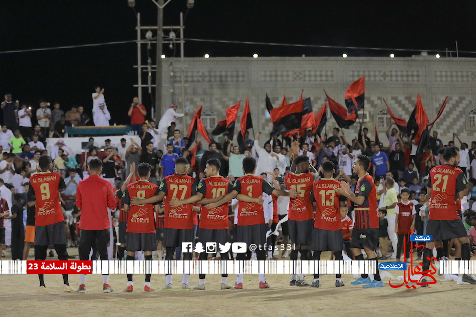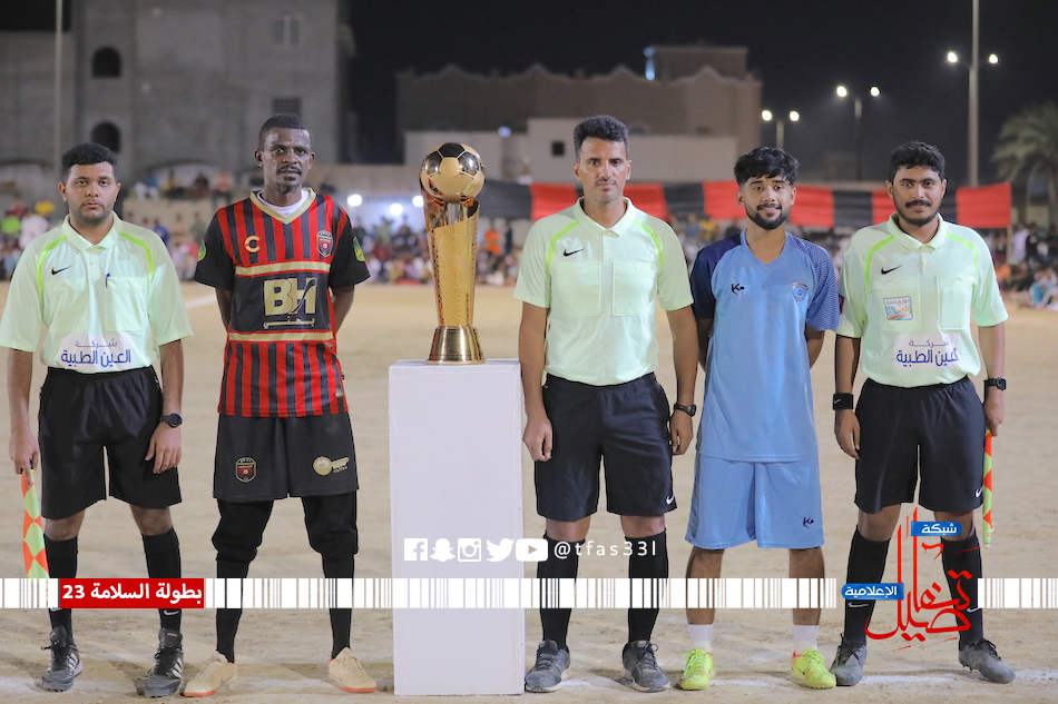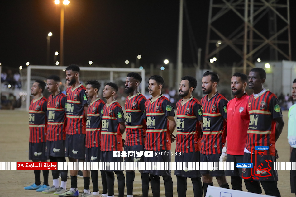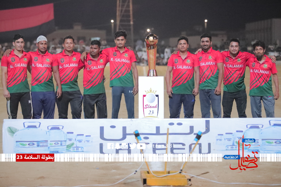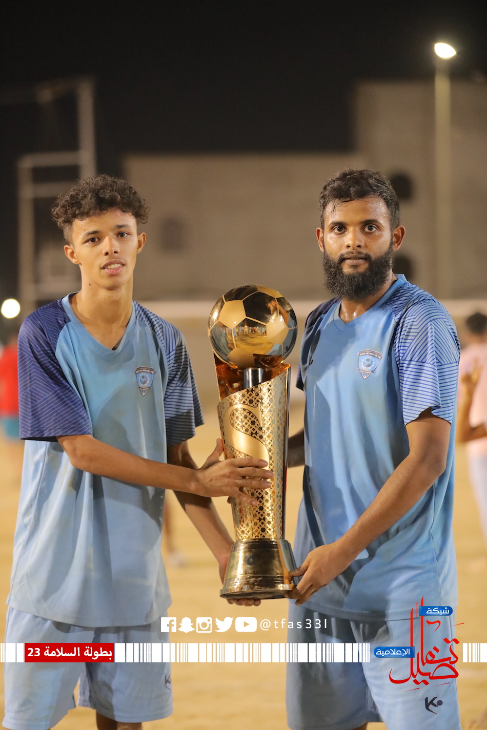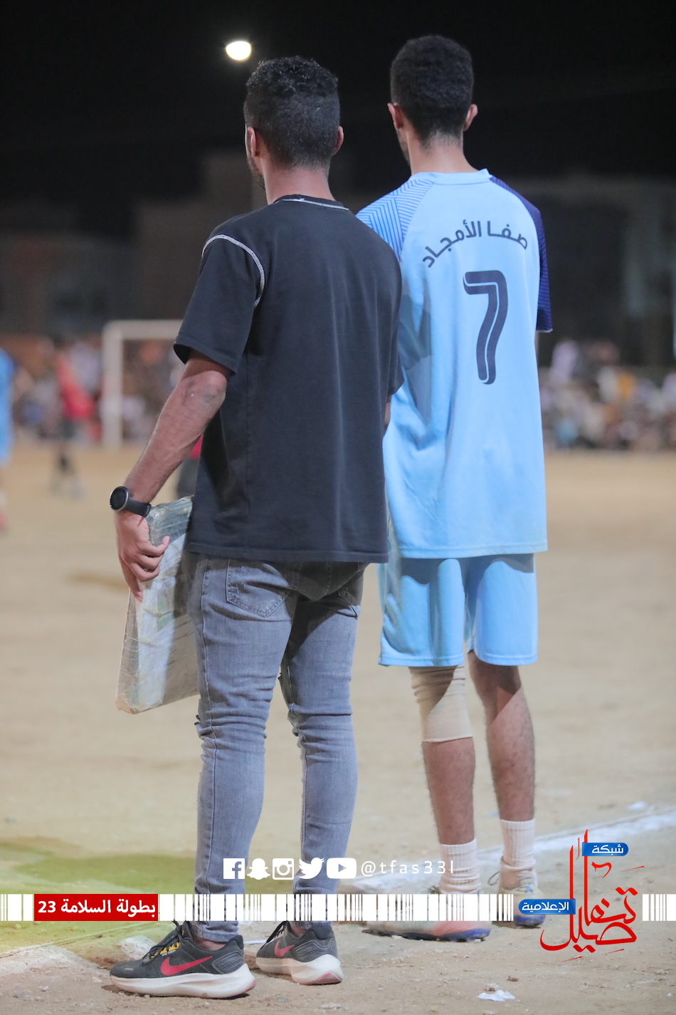 بحضور ممثلي شركة مياه لتين الأستاذ / بلقاسم الغبيشي والأستاذ / شمسي الحضريتي ونيابة عن الشيخ نهاري الغبيشي ابنه الأستاذ / محمد ورئيس مجلس إدارة الجمعية التعاونية بالسلامة الأستاذ / عبدالله جرادي الغبيشي ورئيس نادي التسامح الأستاذ / عبدالرحمن سلطان العبدلي ورئيس رابطة فرق الهواة لكرة القدم بالقنفذة الأستاذ / أحمد النشيري اقيمت المباراة الختامية لبطولة السلامة 23 على كأس لتين والتي جمعت بين فريق صفا الأمجاد من يبس القرن وفريق السلامة من حلي وانتهت المباراة بفوز فريق صفا الأمجاد بركلات الترجيح ٧-٦ بعد التعادل الإيجابي هدف لهدف في الأشواط الأصلية، تقدم السلامة أولاً من علامة الجزاء في الدقيقة ٢٠ عن طريق نادر لويس وأدرك عبدالرحمن المرحبي التعادل لفريق الصفا في الدقيقة ٥٢ من زمن المباراة.
