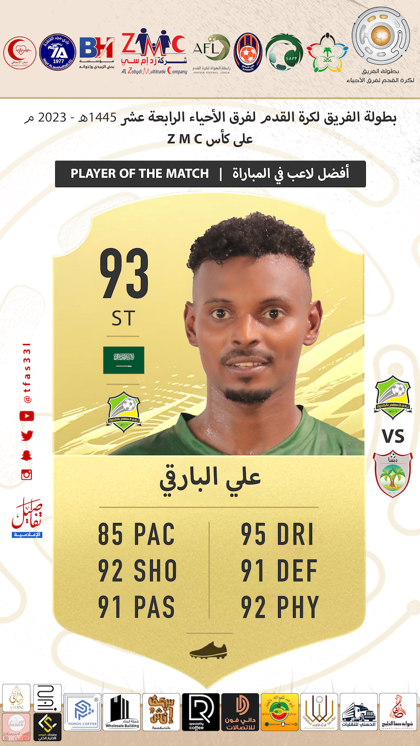 | أفضل لاعب في المباراة / علي البارقي – فريق السهم |