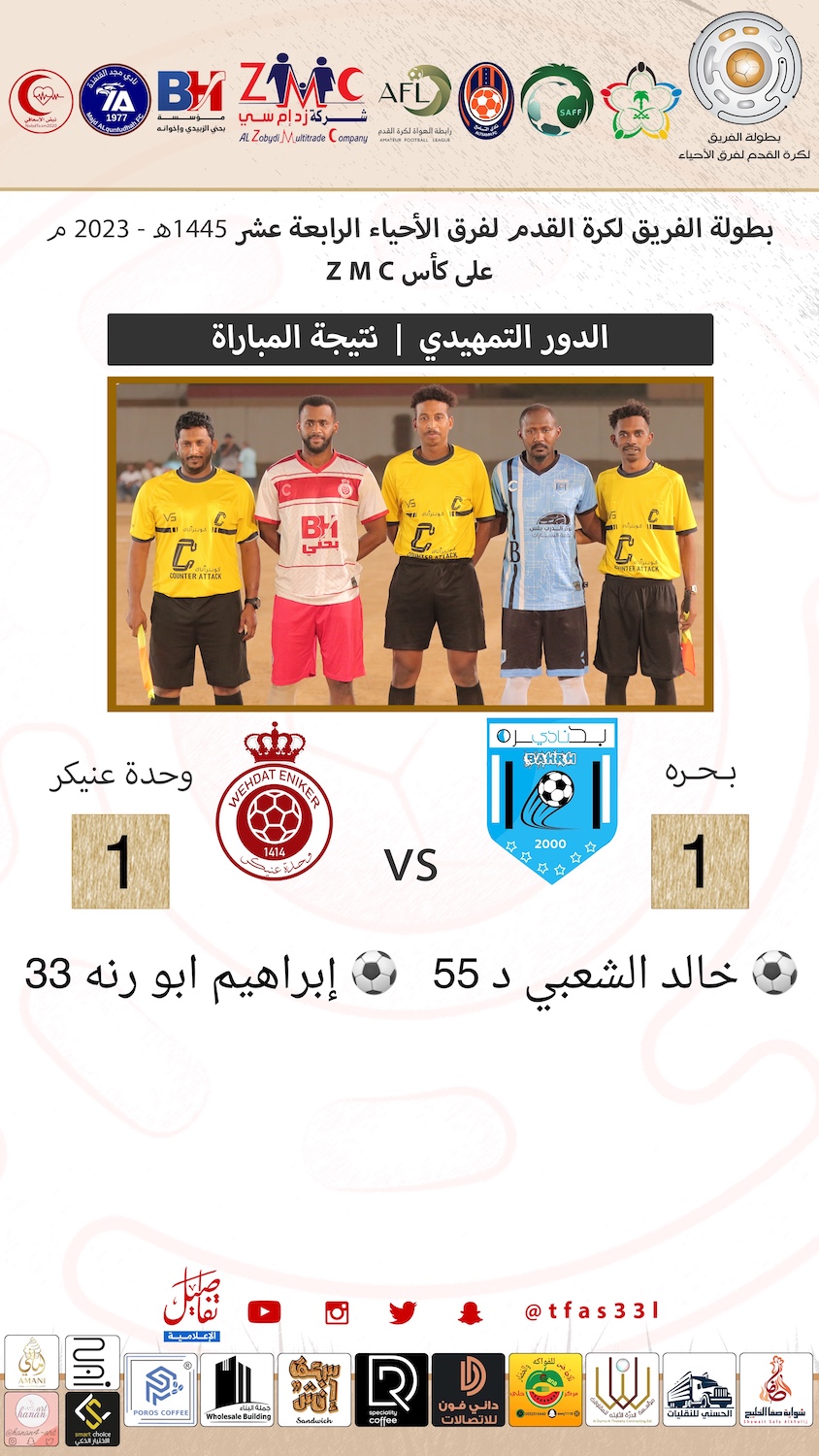 | المباراة الأولى ( بحره – وحدة عنيكر ) |