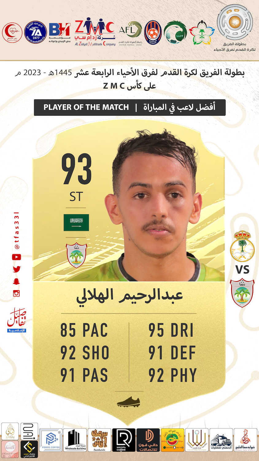 | أفضل لاعب في المباراة / عبدالرحيم الهلالي – فريق دبسا |