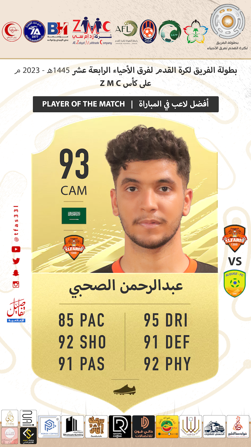 | أفضل لاعب في المباراة / عبدالرحمن الصحبي – فريق الفريق |