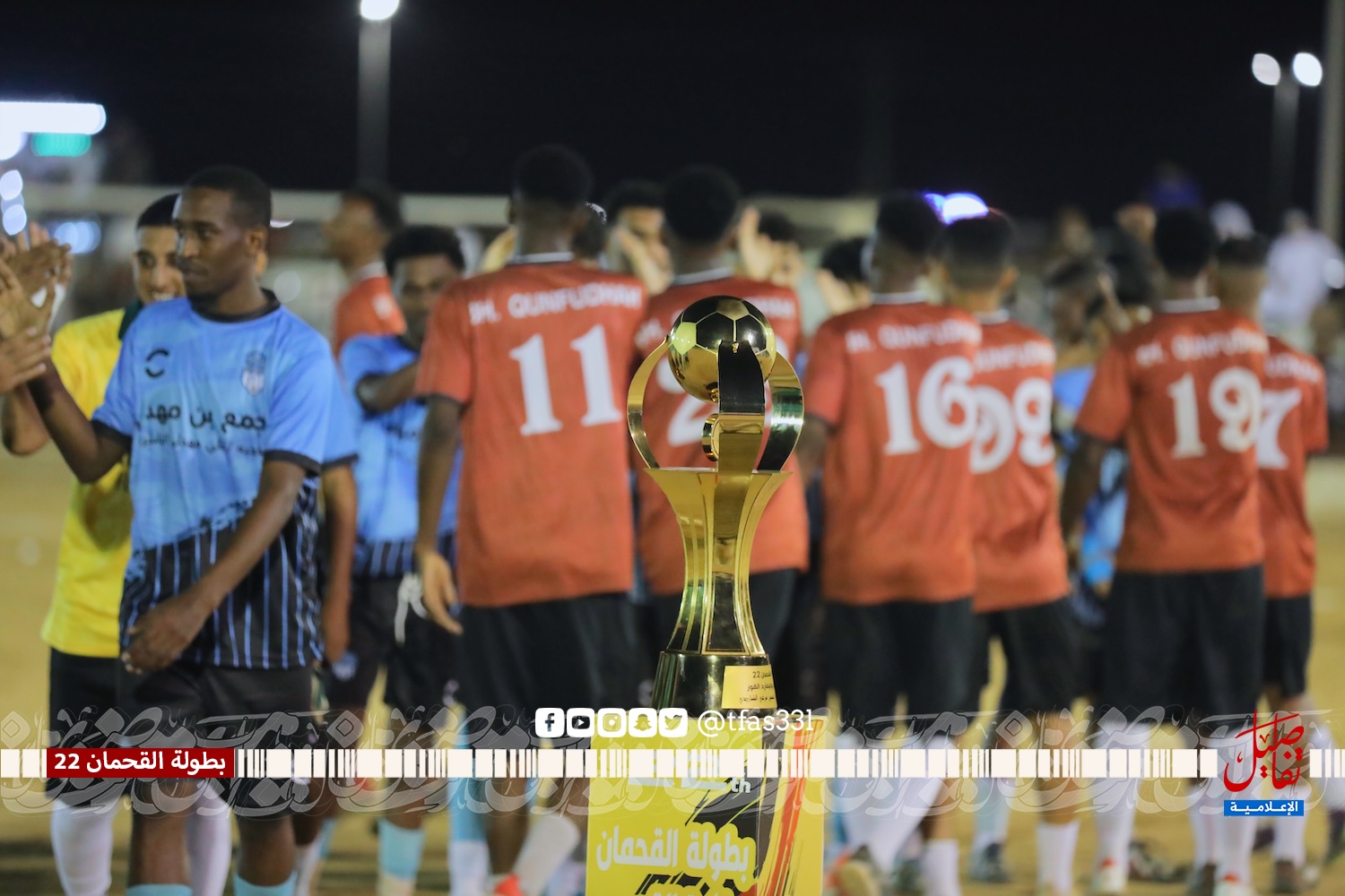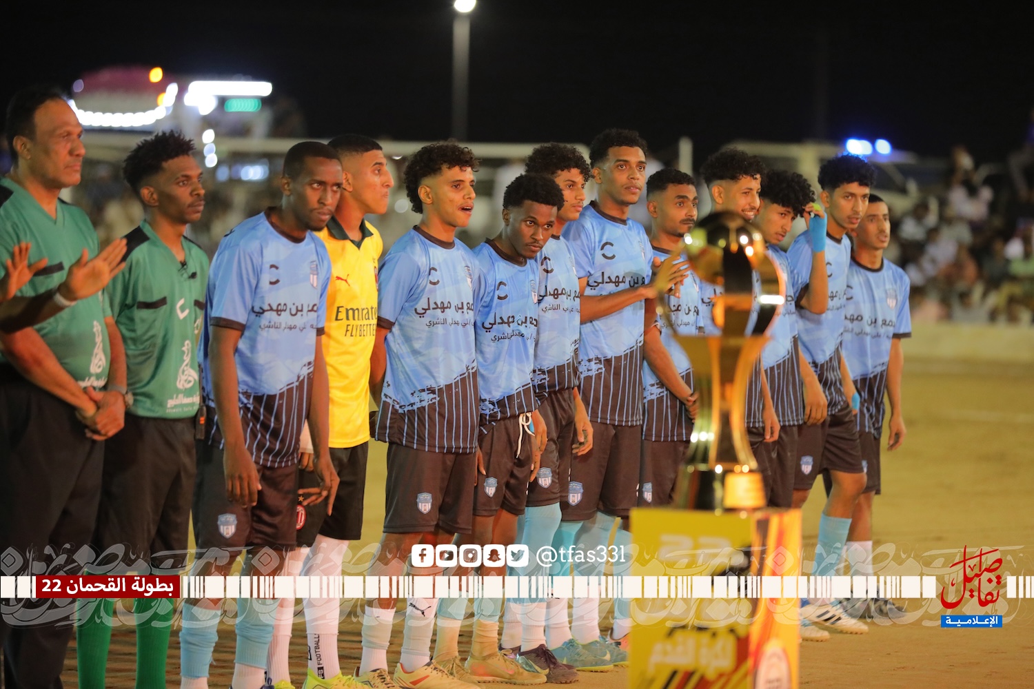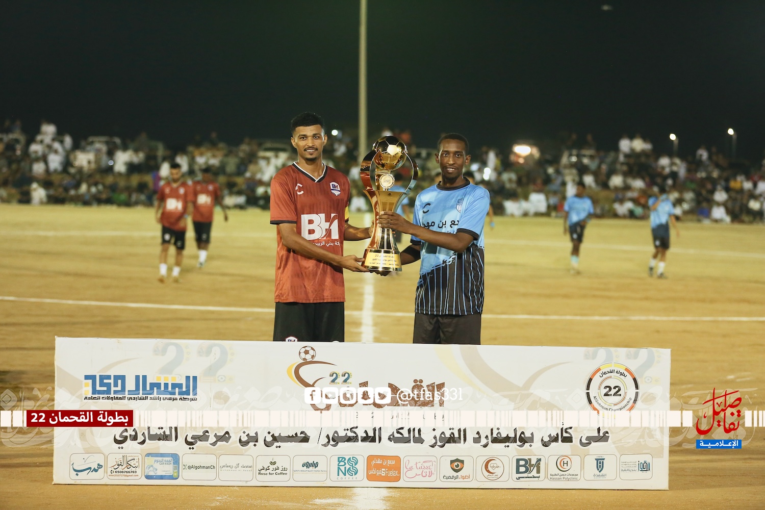 بحضور الأستاذ / محمد بن مرعي الشاردي ( نيابة عن الراعي الرسمي للبطولة الدكتور / حسين بن مرعي الشاردي ) والشيخ / محمد بن مرعي القحماني وممثل بلدية القوز المهندس / علي خضر المقعدي ورئيس رابطة الهواة بالقنفذة الأستاذ / حمد حجوري الناشري وعدد من شيوخ القبائل والوجهاء والشخصيات الرياضية أقيمت المباراة النهائية لبطولة القحمان 22 على كأس بوليفارد القوز لرجل الأعمال الدكتور / حسين بن مرعي الشاردي والتي جمعت بين فريق بي إتش القنفذة وفريق ثلاثاء يبه وانتهت المباراة بفوز فريق ثلاثاء يبه بركلات الترجيح 4 – 5 بعد التعادل الإيجابي 2 – 2 في الأشواط الأصلية، حيث تقدم فريق بي إتش بالهدف الأول عن طريق علي الغشيم في الدقيقة الرابعة من زمن المباراة، وتحصل ثلاثاء يبه على ركلة جزاء أهدرها نجم الفريق عبدالله المقعدي بعد أن تصدى لها الحارس صالح مشاري، وفي الدقيقة 19 تيسير العذيقي يرسل تسديدة أرضية استقرت في شباك بي إتش ويعلن عن هدف التعادل، ومع بداية الشوط الثاني تحصل ثلاثاء يبه على ركلة جزاء نفذها بنجاح عبدالله المقعدي ويتقدم معها ثلاثاء يبه في النتيجة، وقبل انتهى المباراة بخمس دقائق موسى الصاروخ أرسل صاروخ من كرة ثابتة أستقر في شباك الحسني ويذهب بالمباراة إلى ركلات الحسم التي ابتسمت لفريق ثلاثاء يبه بعد أن تصدى حارس ثلاثاء يبه مديني الحسني للركلة الخامسة وسدد بعدها ركلة التتويج بالذهب.