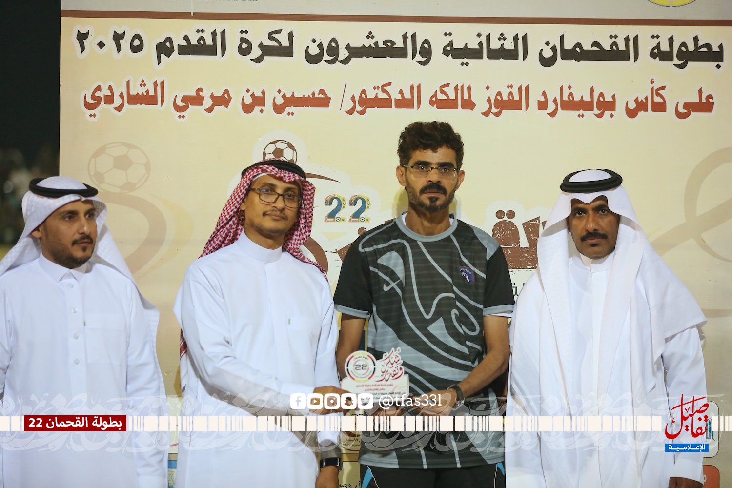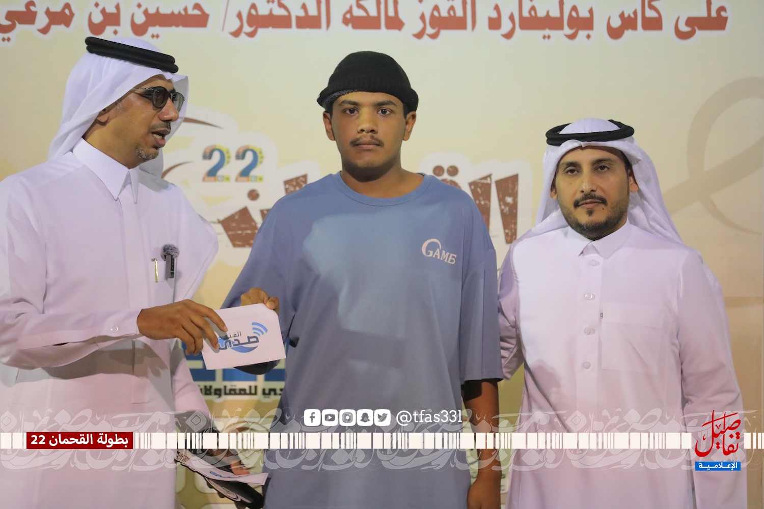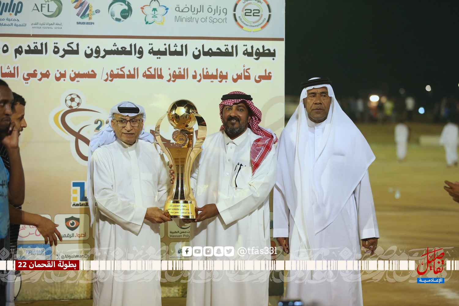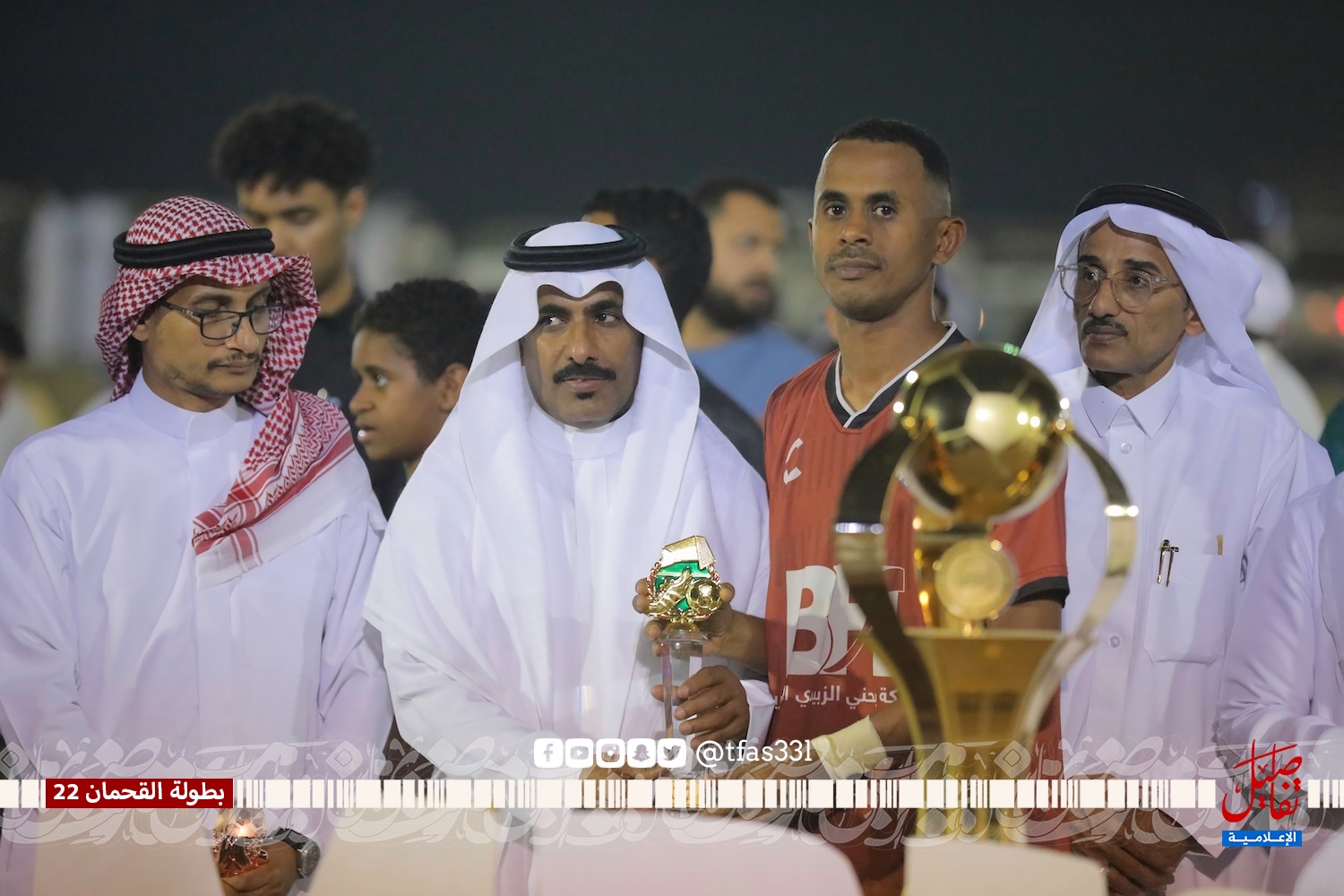 بحضور الأستاذ / محمد بن مرعي الشاردي ( نيابة عن الراعي الرسمي للبطولة الدكتور / حسين بن مرعي الشاردي ) والشيخ / محمد بن مرعي القحماني وممثل بلدية القوز المهندس / علي خضر المقعدي ورئيس رابطة الهواة بالقنفذة الأستاذ / حمد حجوري الناشري وعدد من شيوخ القبائل والوجهاء والشخصيات الرياضية أقيمت المباراة النهائية لبطولة القحمان 22 على كأس بوليفارد القوز لرجل الأعمال الدكتور / حسين بن مرعي الشاردي والتي جمعت بين فريق بي إتش القنفذة وفريق ثلاثاء يبه وانتهت المباراة بفوز فريق ثلاثاء يبه بركلات الترجيح 4 – 5 بعد التعادل الإيجابي 2 – 2 في الأشواط الأصلية، حيث تقدم فريق بي إتش بالهدف الأول عن طريق علي الغشيم في الدقيقة الرابعة من زمن المباراة، وتحصل ثلاثاء يبه على ركلة جزاء أهدرها نجم الفريق عبدالله المقعدي بعد أن تصدى لها الحارس صالح مشاري، وفي الدقيقة 19 تيسير العذيقي يرسل تسديدة أرضية استقرت في شباك بي إتش ويعلن عن هدف التعادل، ومع بداية الشوط الثاني تحصل ثلاثاء يبه على ركلة جزاء نفذها بنجاح عبدالله المقعدي ويتقدم معها ثلاثاء يبه في النتيجة، وقبل انتهى المباراة بخمس دقائق موسى الصاروخ أرسل صاروخ من كرة ثابتة أستقر في شباك الحسني ويذهب بالمباراة إلى ركلات الحسم التي ابتسمت لفريق ثلاثاء يبه بعد أن تصدى حارس ثلاثاء يبه مديني الحسني للركلة الخامسة وسدد بعدها ركلة التتويج بالذهب.